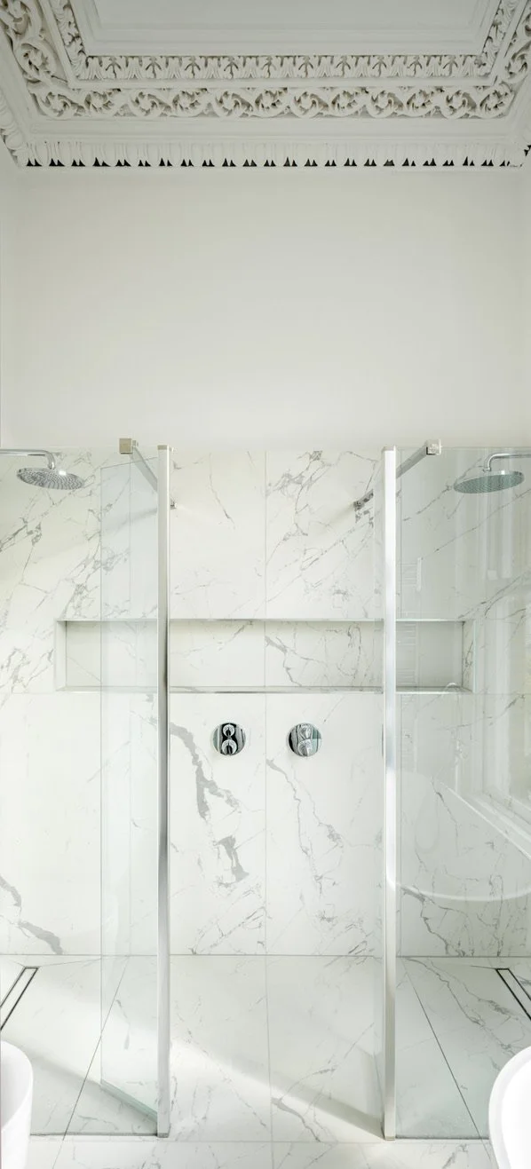 The new living spaces on the ground floor have a generosity that reflects the historic reception rooms upstairs in the original house. These spaces are characterised by rooflights which animate each part of the open plan living, kitchen and dining space.